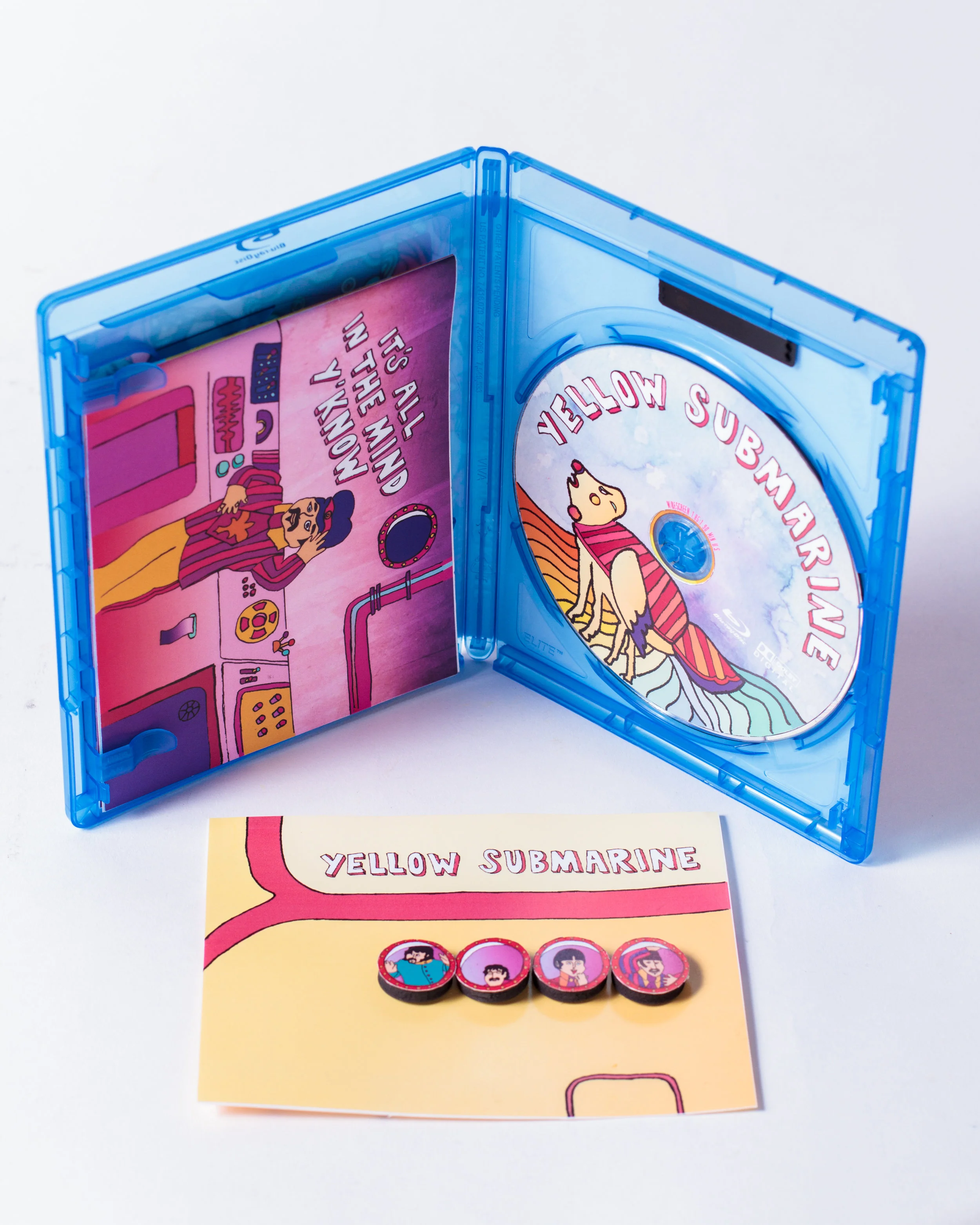 I created the 50th Anniversary DVD set for The Beatles' "Yellow Submarine". My goal was to update the color palette and typography without losing the psychedelic illustrations. I created a slip cover with a die cut of a submarine to give consumers a peak into the wild realms of the mind the movie travels in. Inside the DVD, buyers receive a magnet set and small booklet with fun facts about the songs gives Beatles fans.